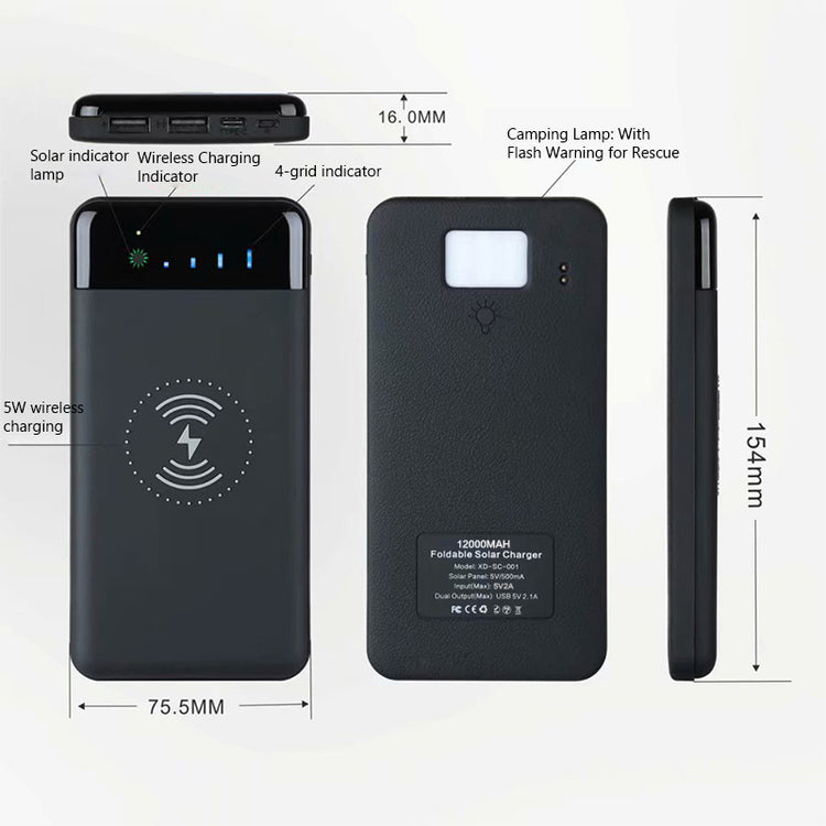 Led indicators: the first lamp is solar charging power indicator, other four lamps are Power display